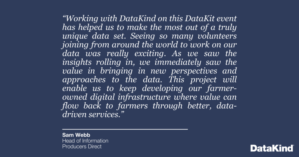 DataKind and Producers Direct are continuing to explore ways to collaborate in the near future. If you’re interested in following this journey, or want to join a future DataKit event, please subscribe to our newsletter here