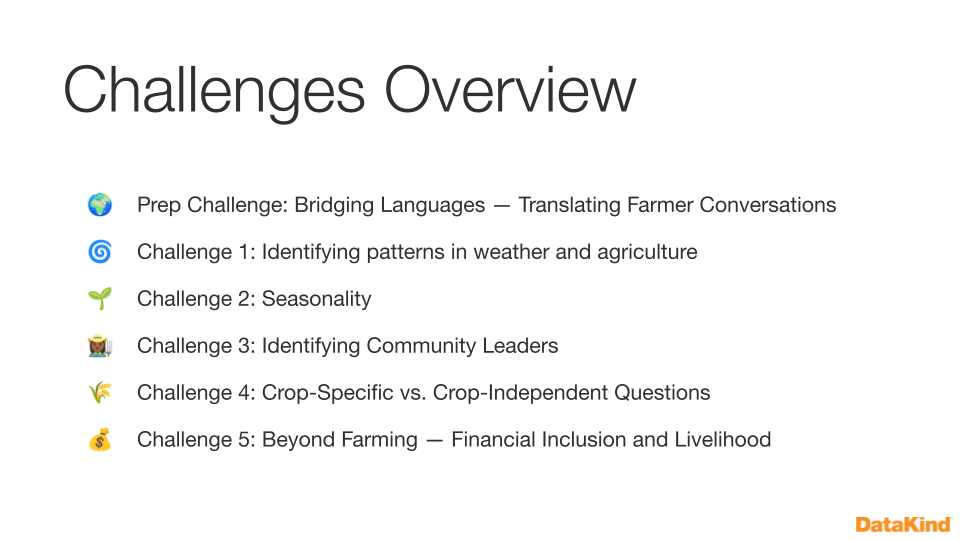 Our event objective? To leverage the power of our global data science community to unlock insights that could strengthen climate resilience, boost agricultural productivity, and expand financial inclusion for smallholder farmers.